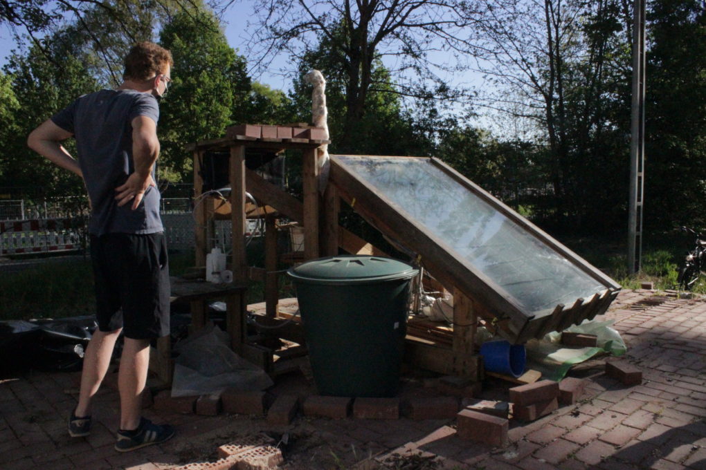 As some of our units are located on school grounds, some of them have been put into standby mode. For this purpose, the absorber box is covered with a plastic sheet that is impervious to light so that no components are heated by the sun. At the moment three of the plants are in this state. The remaining systems are still in use and measurement data is sent to the support group on a weekly basis.